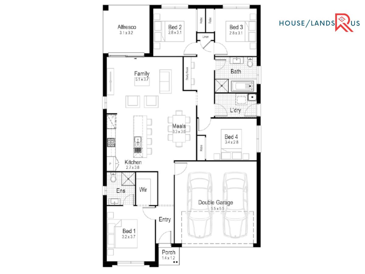- Tiles to entry, hallways, family, kitchen and meals areas
