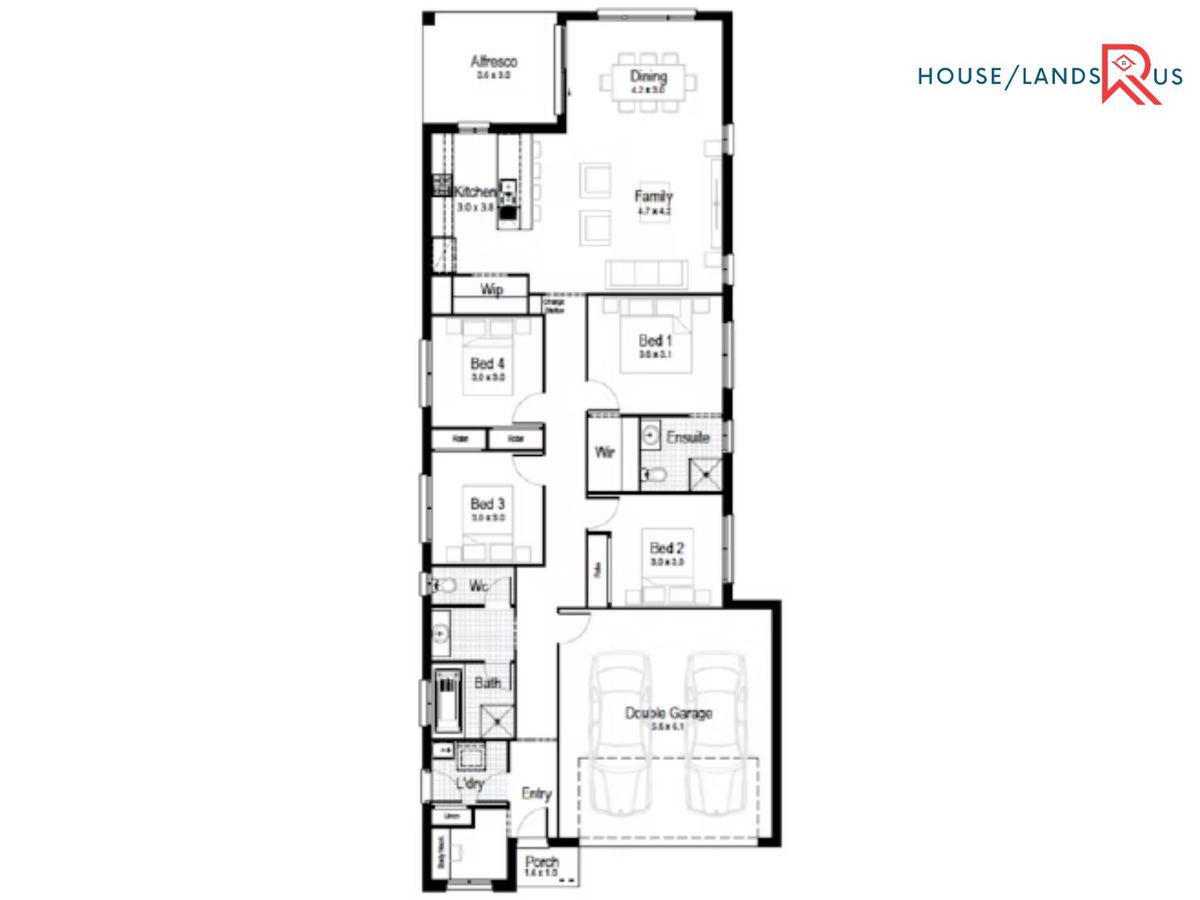 - Tiles to entry, hallways, family, kitchen and meals areas
